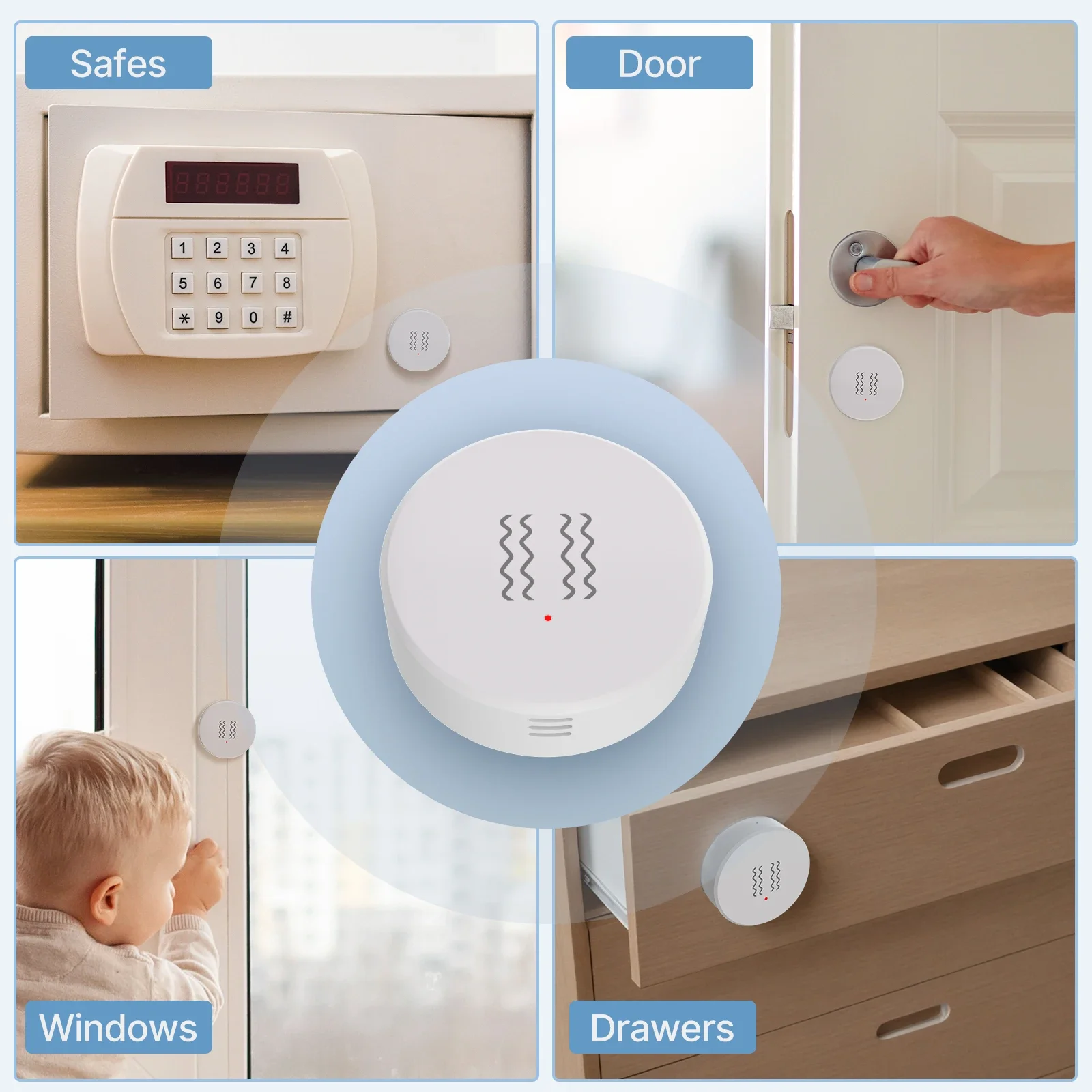 Whether it’s doors, windows, safes, or other use cases, this wireless vibration (tilt) sensor adapts effortlessly to diverse scenarios with its wireless design and precision detection. It instantly notifies you of anomalies, ensuring the security of both your property and loved ones.