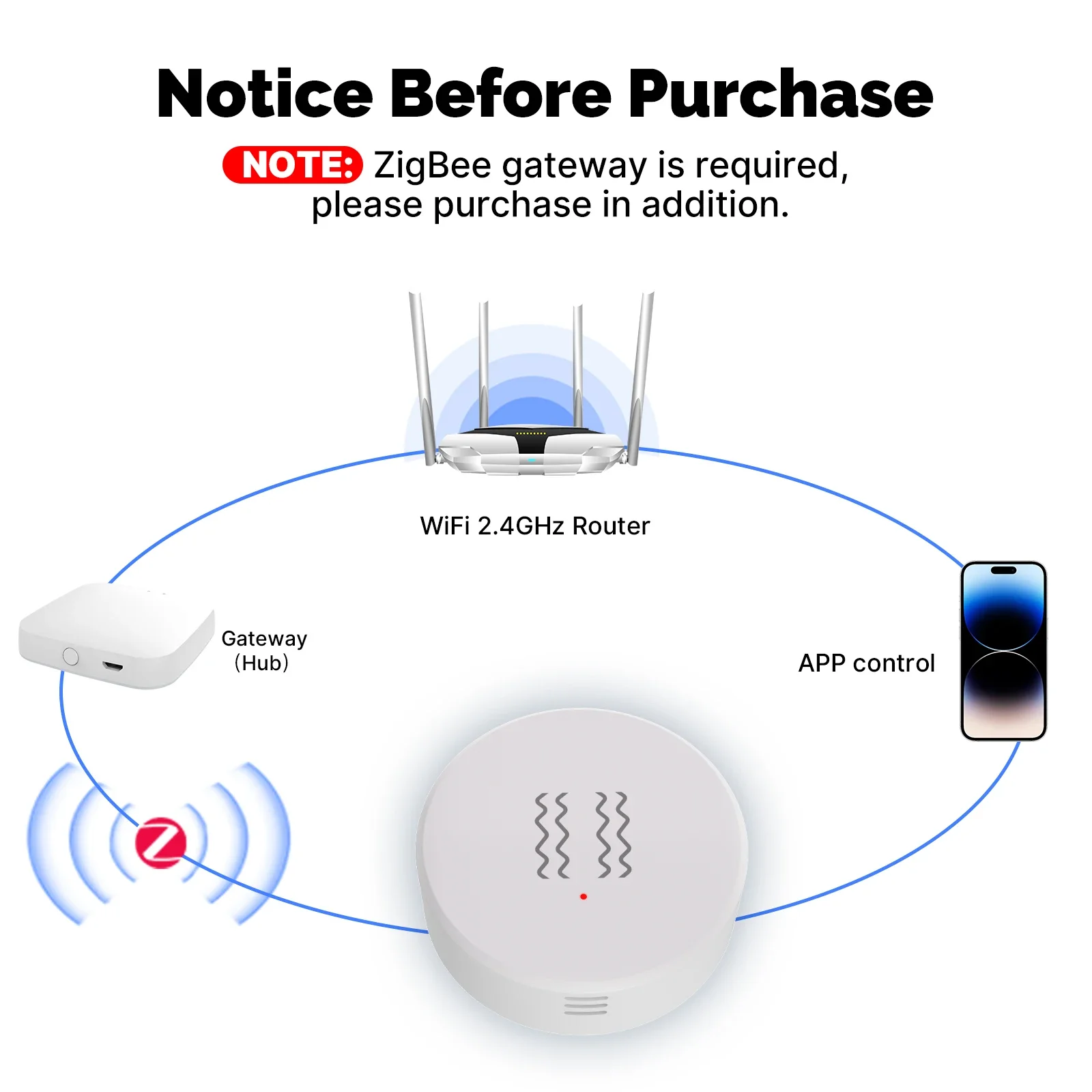 Note: A Zigbee gateway is required, please purchase separately