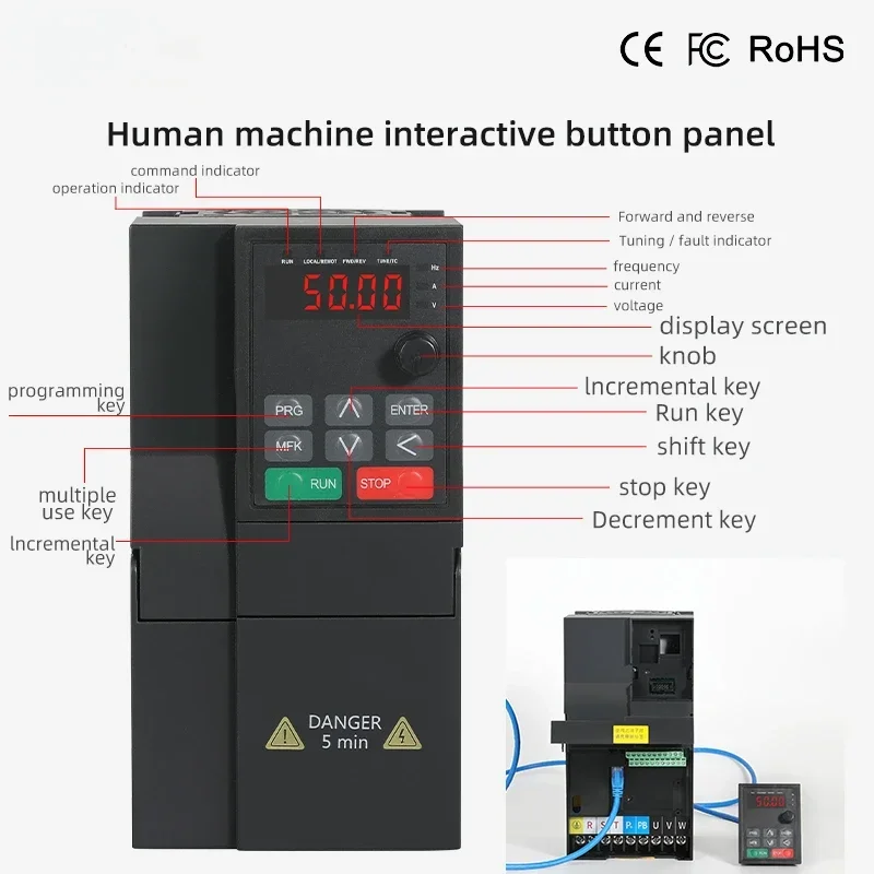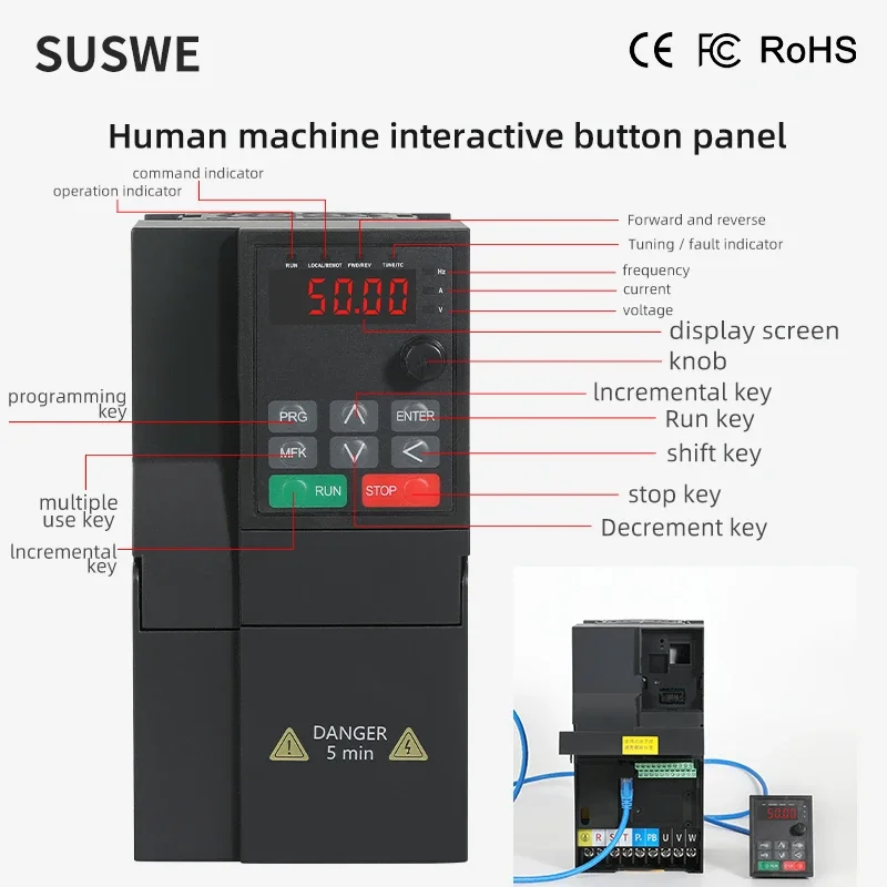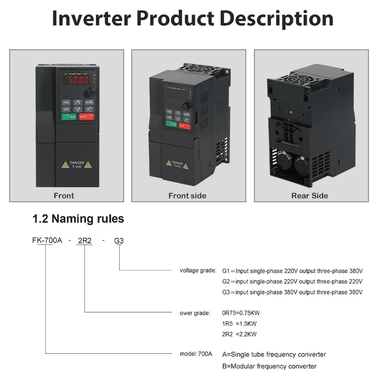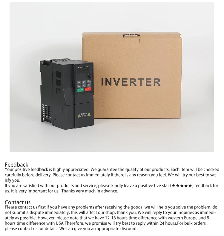 4. This product’s frequency converter can be customized and shipped within two to three days. It has a single-phase 220V input and a three-phase 380V output. Please contact customer service for assistance