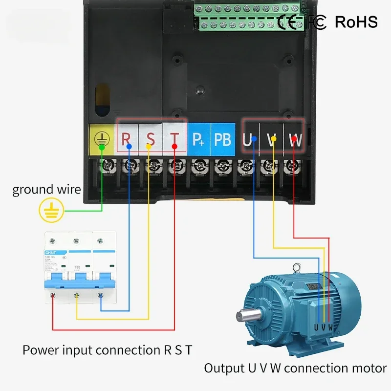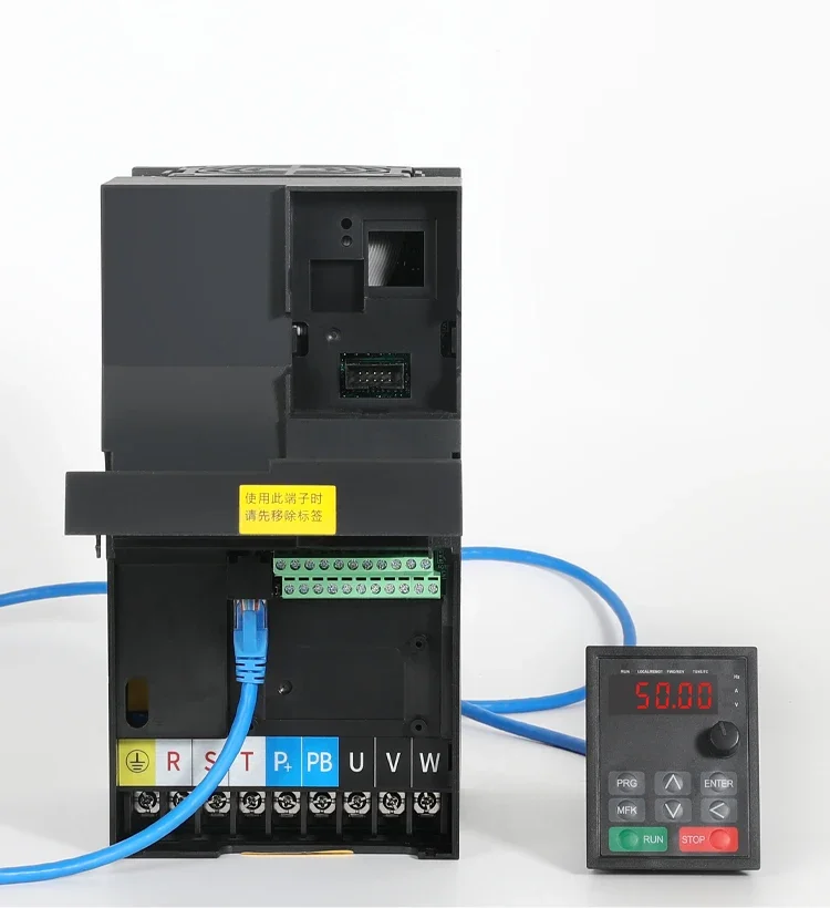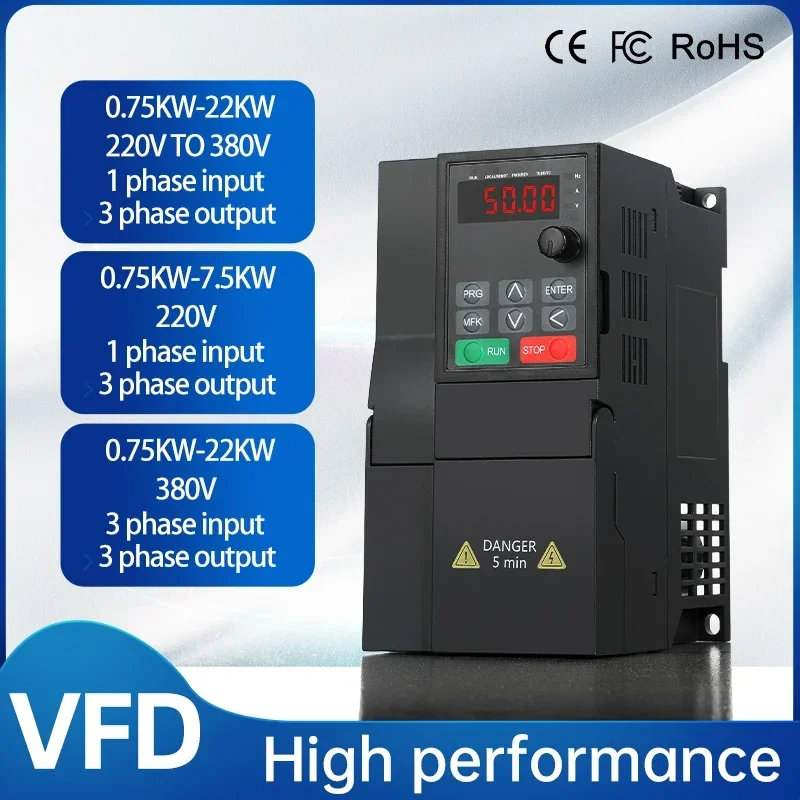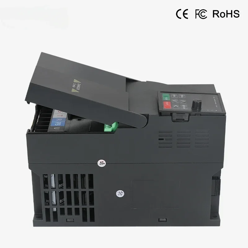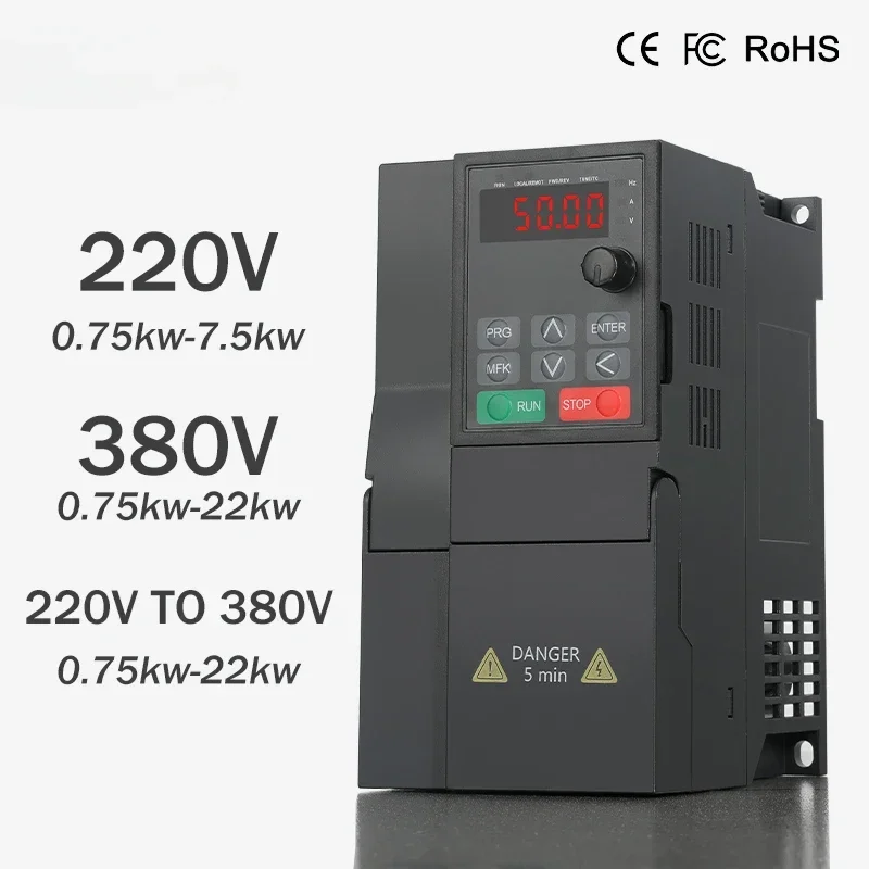 This frequency converter is compact in size and easy to use. It can be used in situations where there is no industrial three-phase 380V power supply and the motor cannot be changed to a three-phase 220V motor by rewiring.