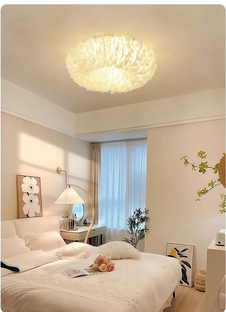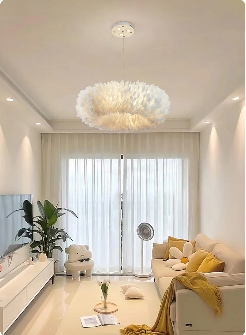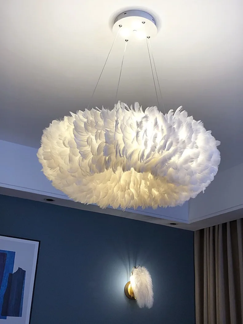 Nordic Led Ceiling Chandelier With Feathers Pendant Lamp For Bedroom Kitchen Dining Room Suspension Hanging Lighting