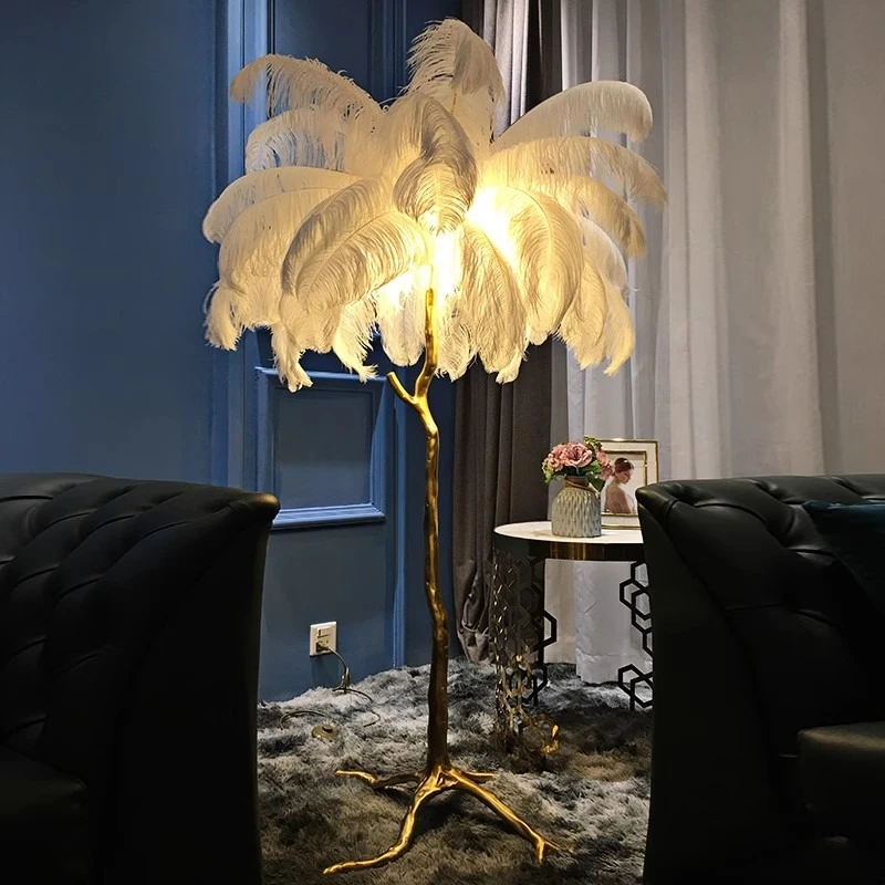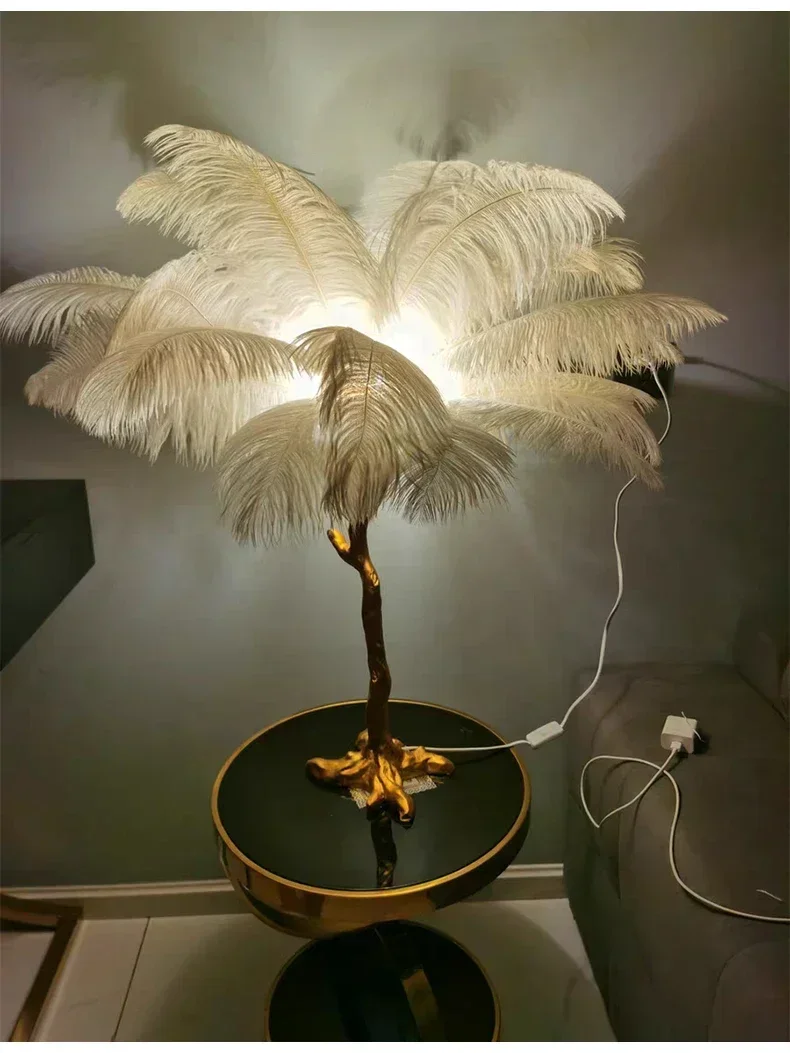 Nordic Ostrich Feather Floor Lights Modern Luxury Ins Table Lamps for Live Broadcast Room Atmosphere Decoration Lighting Fixture