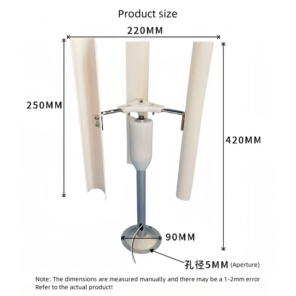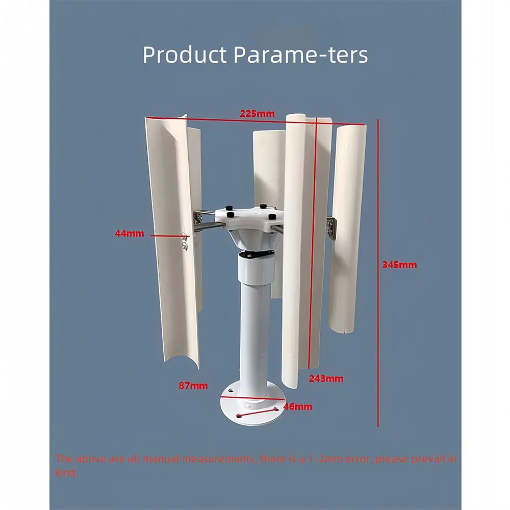 1. Simple structure: composed of a vertical rotor and a base. In contrast, horizontal wind turbines require more complex structures such as blades, towers, gearboxes, etc.