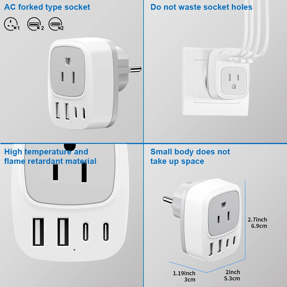 PUJIMAX 1 Outlet EU Surge Protector with 3 UsB Charge
