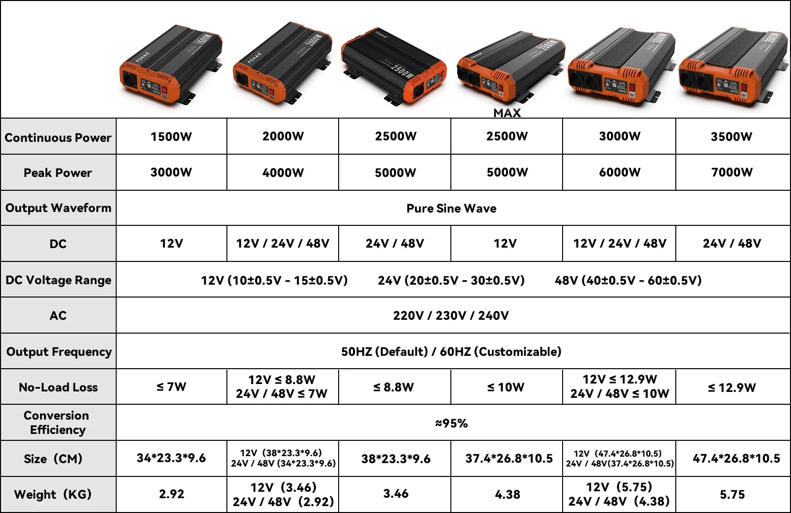 Continuous Power: 1500W / 2000W / 2500W / 3000W / 3500W
