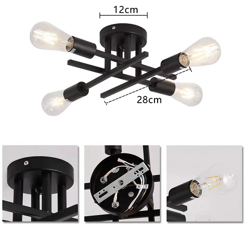 Be the first to review “Retro Industrial Chandelier Black/Gold Wrought Iron LED Ceiling Lamp E27 Light Living Room Modern Decor Home Lighting Fixture”