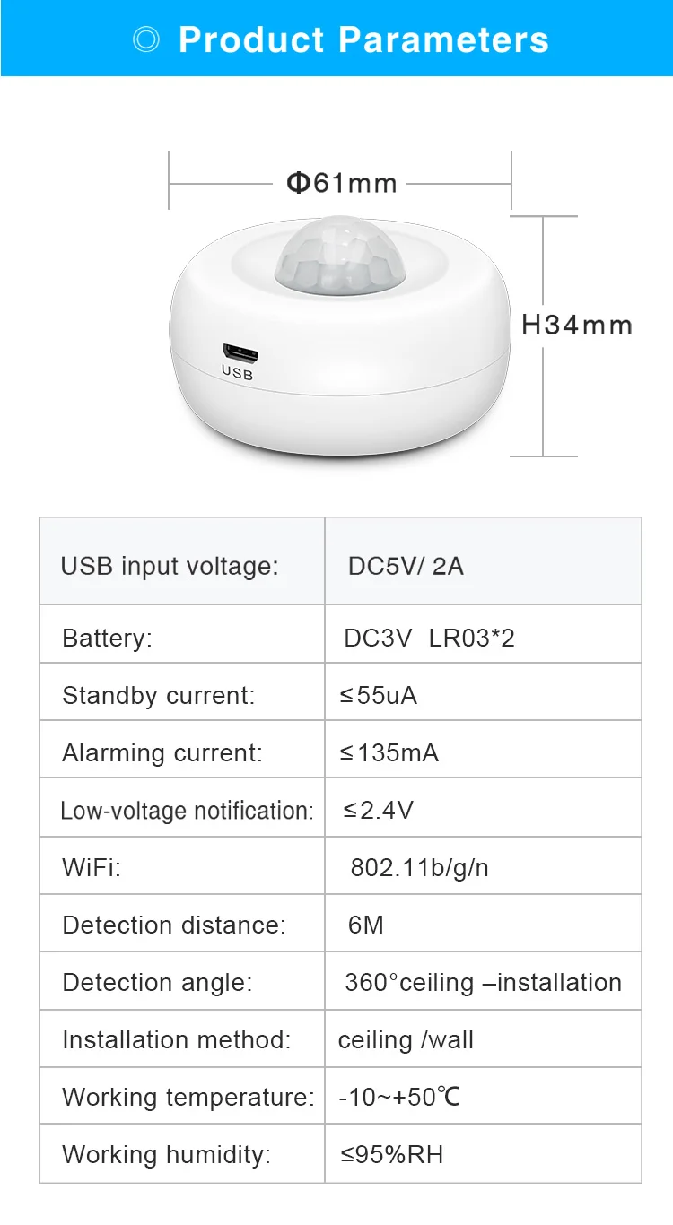 【Emergency Alert Push Function with Movement Detected】When there is movement detected, the movement tuya motion sensor alert notifications will be pushed to your phone, be aware of what’s happening at home even when you’re away.