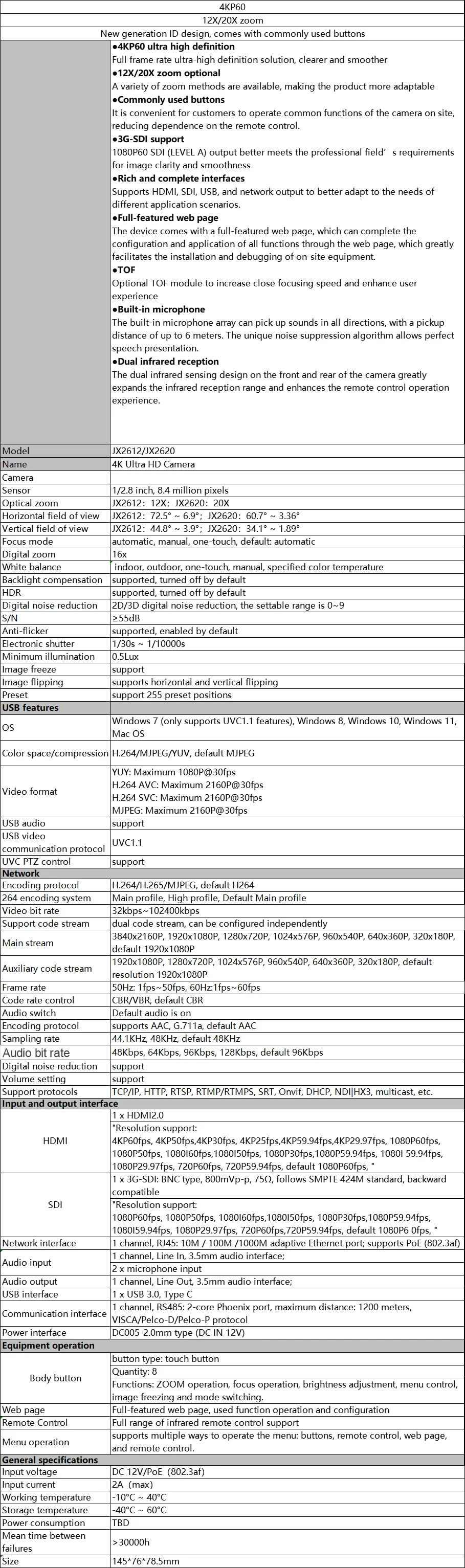 Equipped with a full HD telephoto lens, supporting a maximum 20×