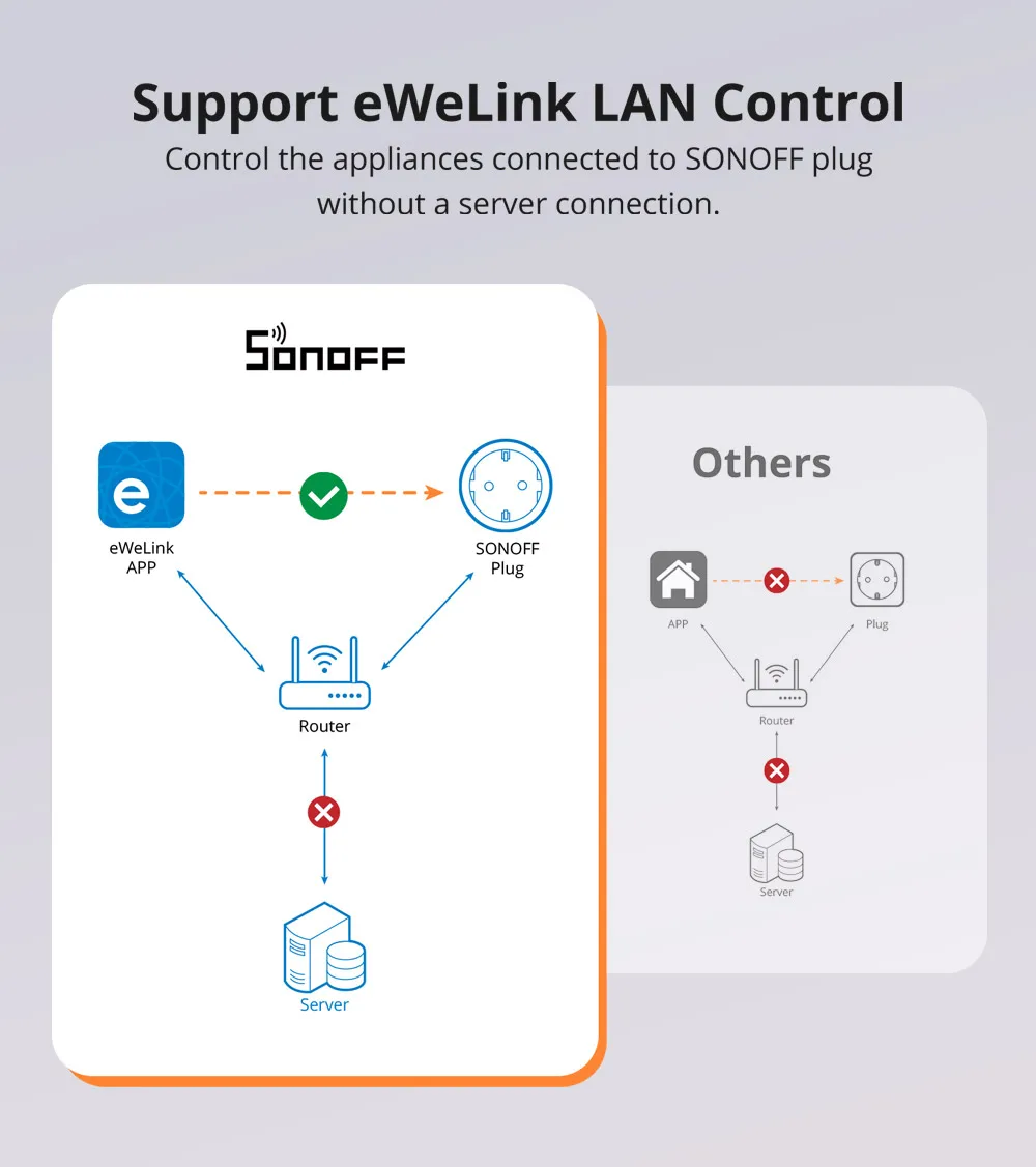 【App & Voice Control】Control S60 plug from anywhere, anytime via the eWeLink App, or give voice commands to Alexa, or Google.