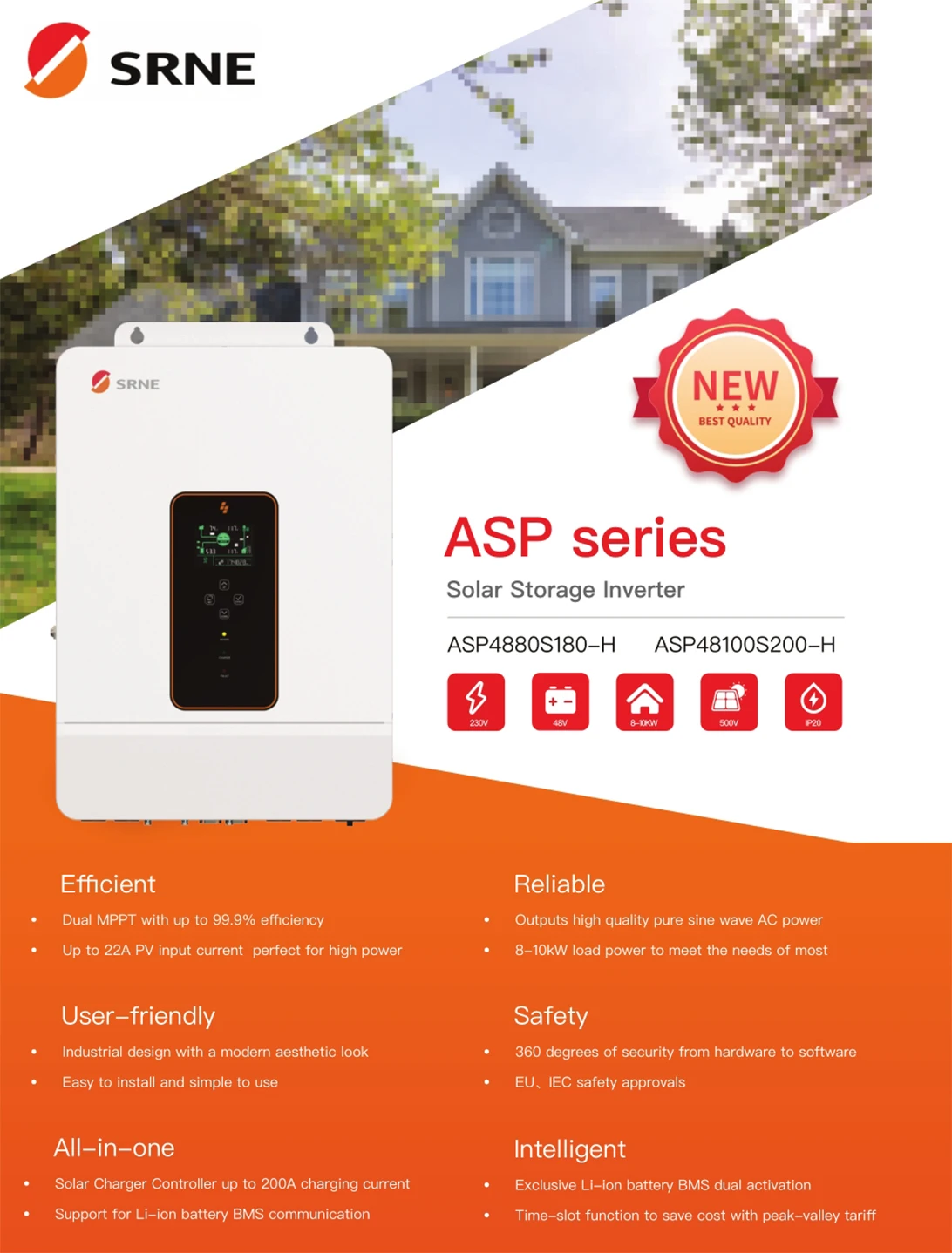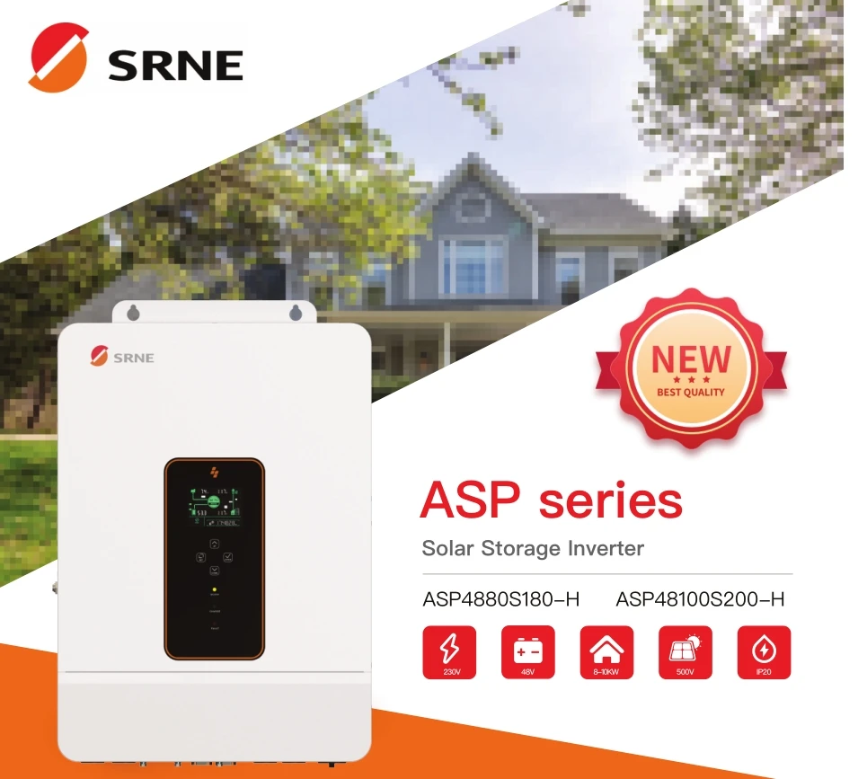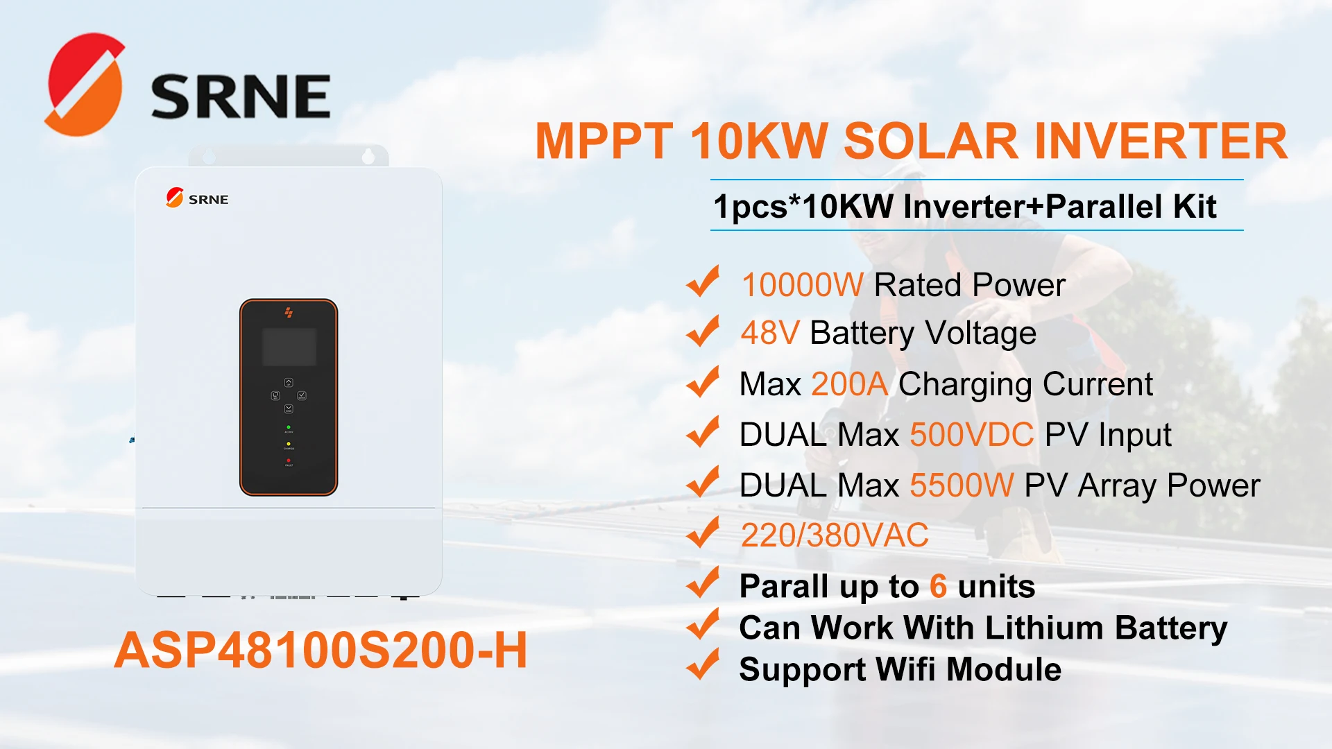 SRNE 10KW single/three Phase Inverter 48VDC To 230/380VAC Dual MPPT Max PV 500V Hybrid Solar Inverter Max Parallel 6 Units ASP48100S200-H