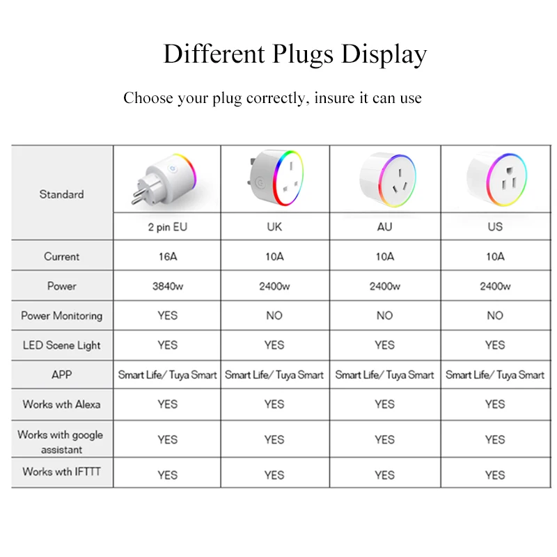 Note: 2 Pin EU plug is 16A Max , and with Power meter function;