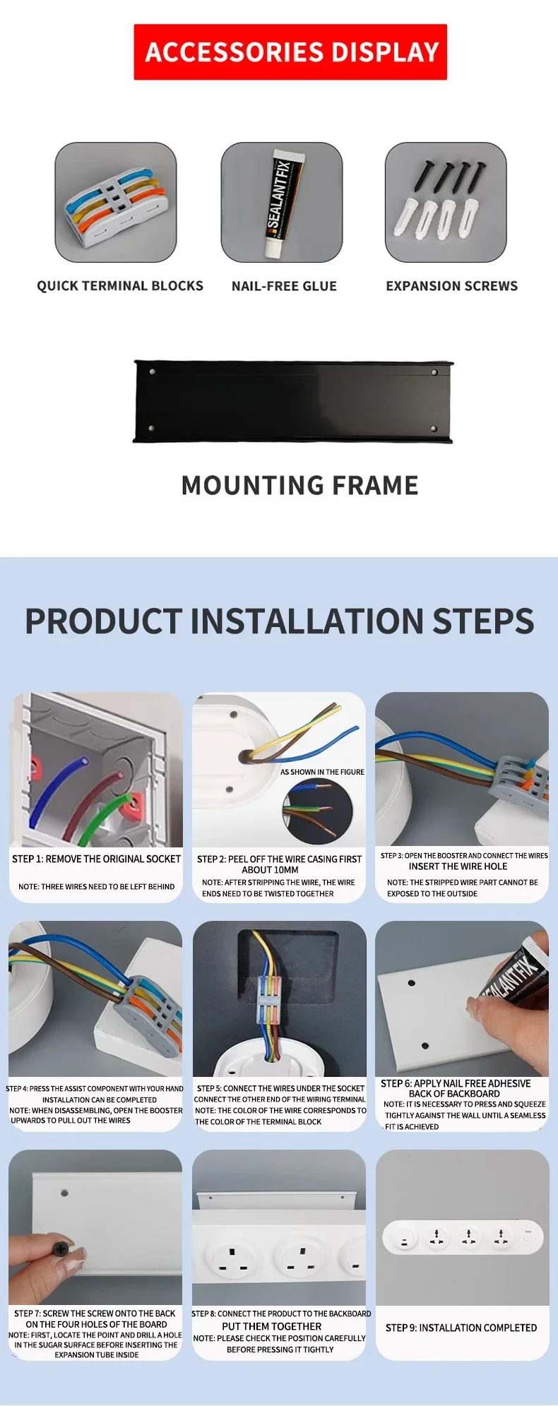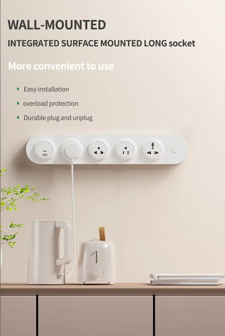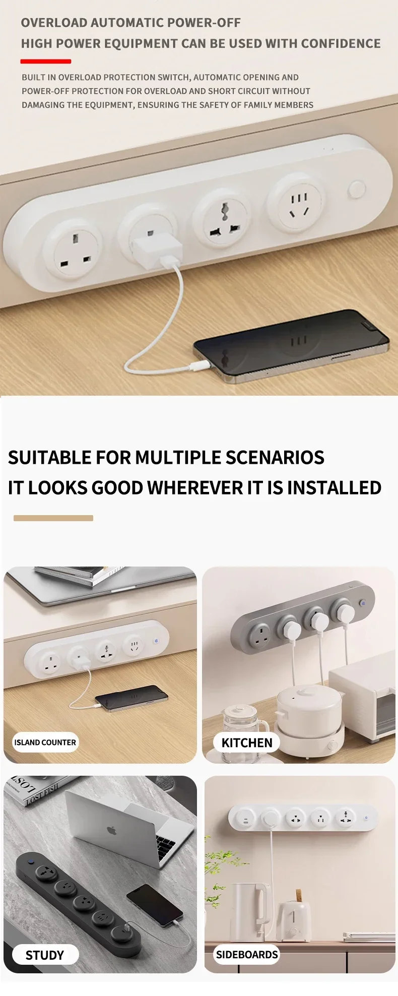 Universal Standard Switch Power Outlets Wall Mount Socket USB-A/USB-C Jack Desktop Socket for EU US UK Thailand