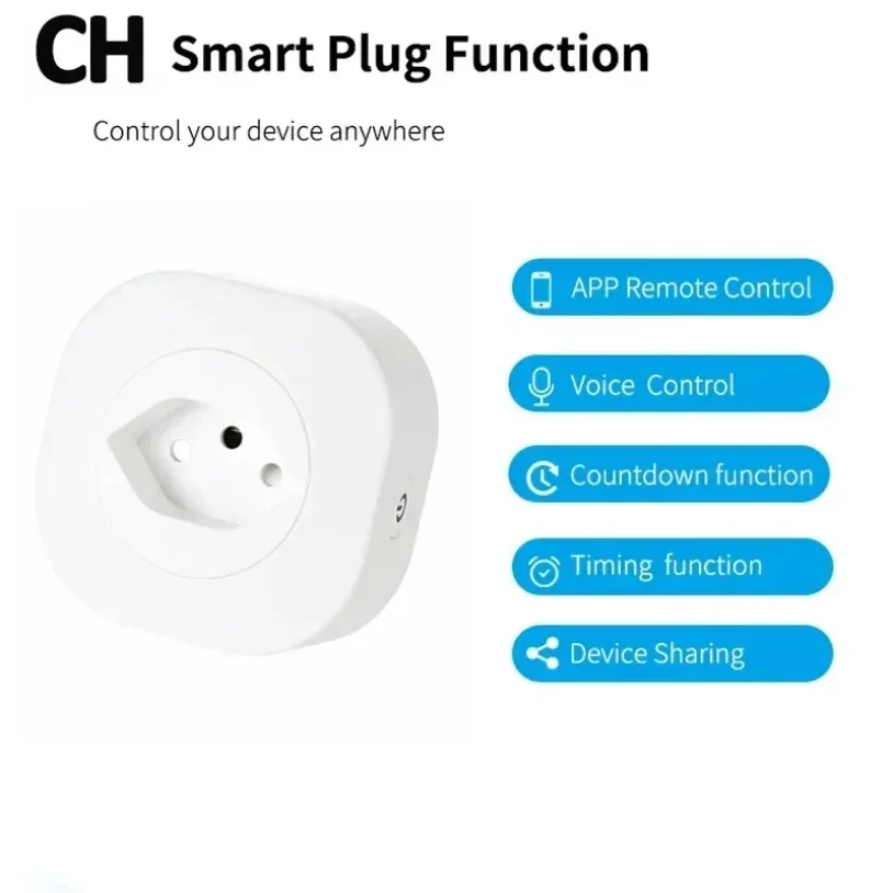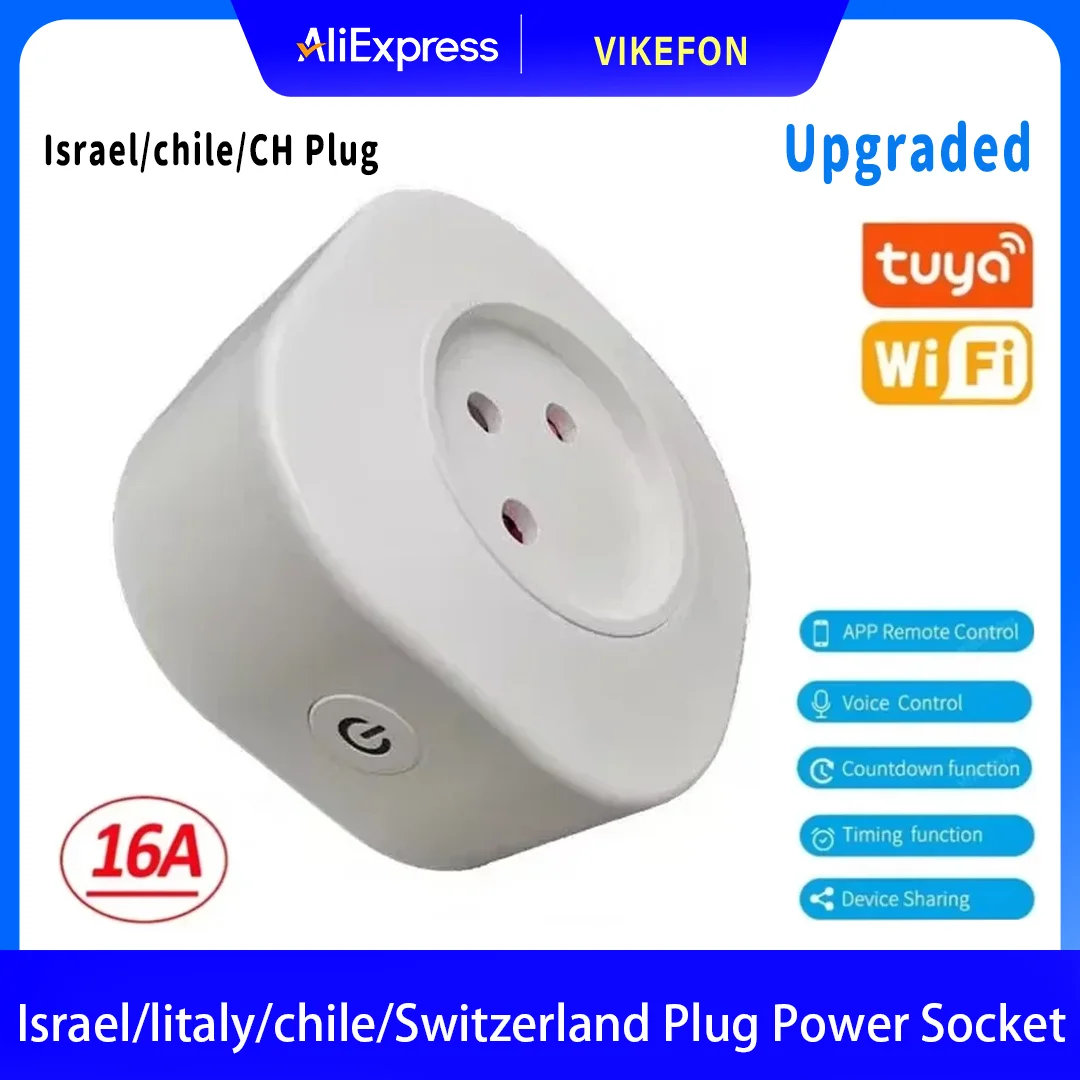 WiFi Smart Plug 16A Israel/Italy/Chile/Switzerland Plug Power Socket Outlet Tuya APP For Alexa Google Voice Control Timing