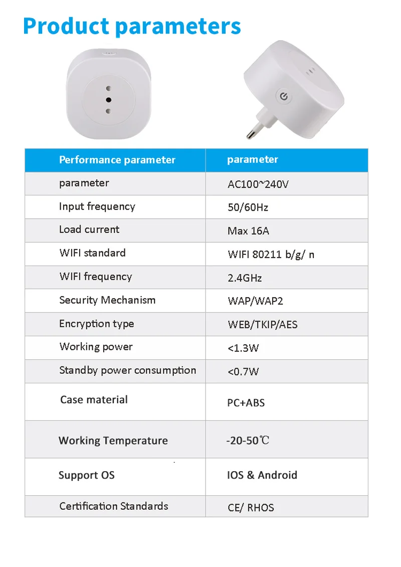 • Model Number: Chile Italy Wifi Smart Plug Socket