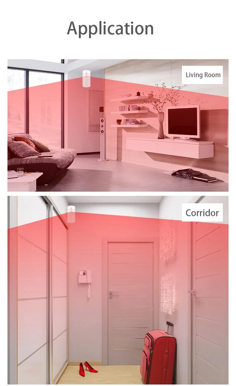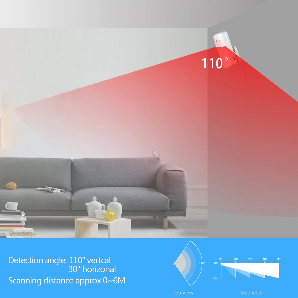 Installation height is about 2.2 meters above ground and the optimized detection angle for most motion sensor is 90 degree. The sensor should face the detected area with this consideration for best coverage. It is advised to install with the face of motion sensor perpendicular to the most probable moving detection of people for the highest effective detection.Before use, make sure the power switch of PIR motion sensors is at the ON position.