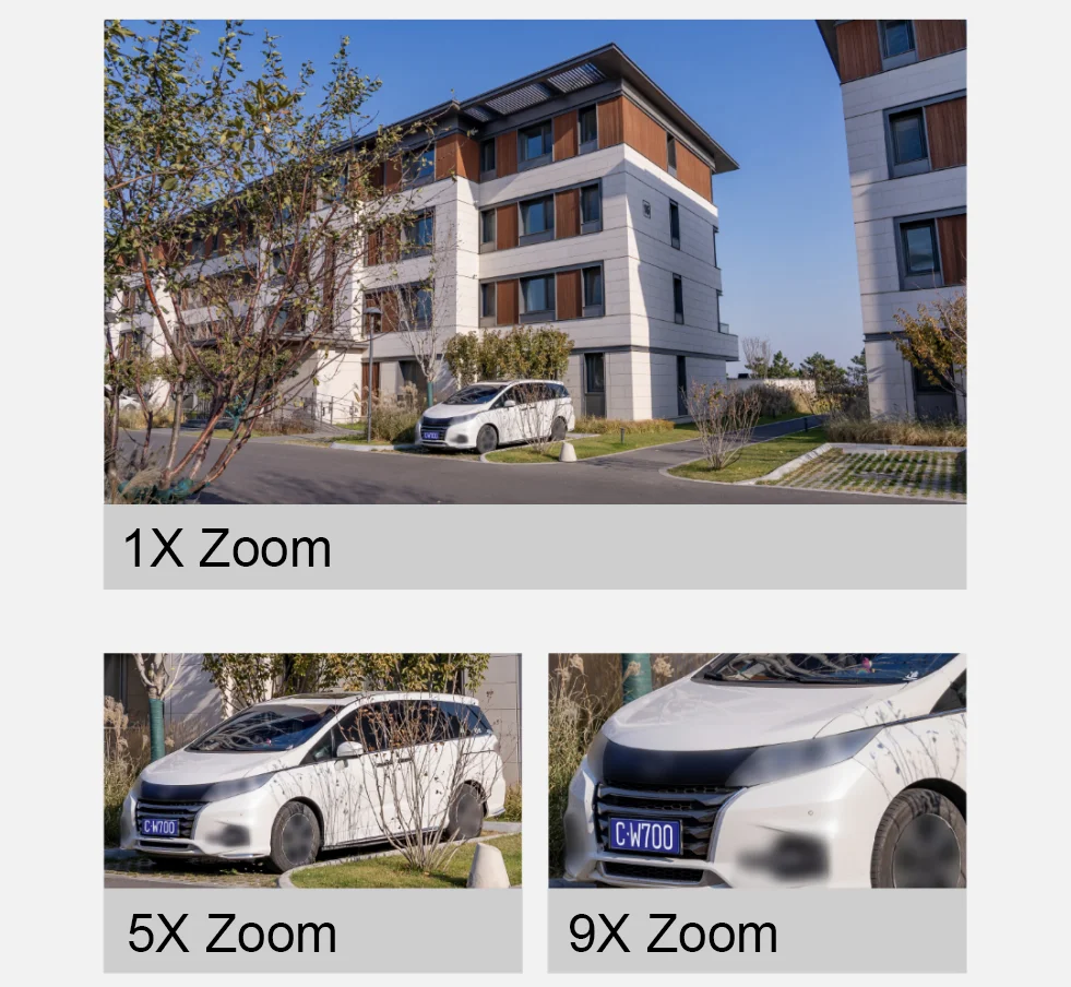 9x zoom to magnify details from far to near, allowing you to watch over every corner