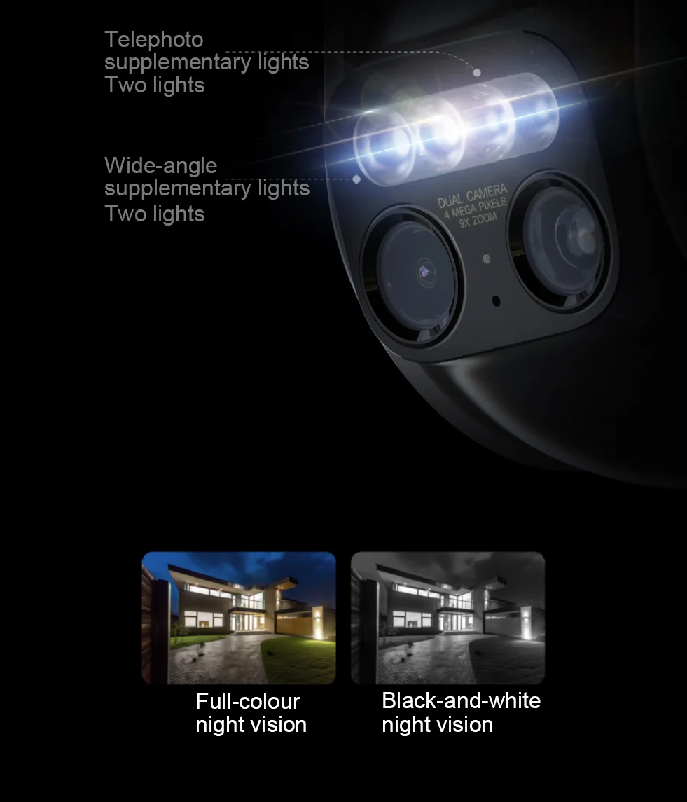 Four-light smart full-colour night vision,Take full-colour pictures even in low-light conditions