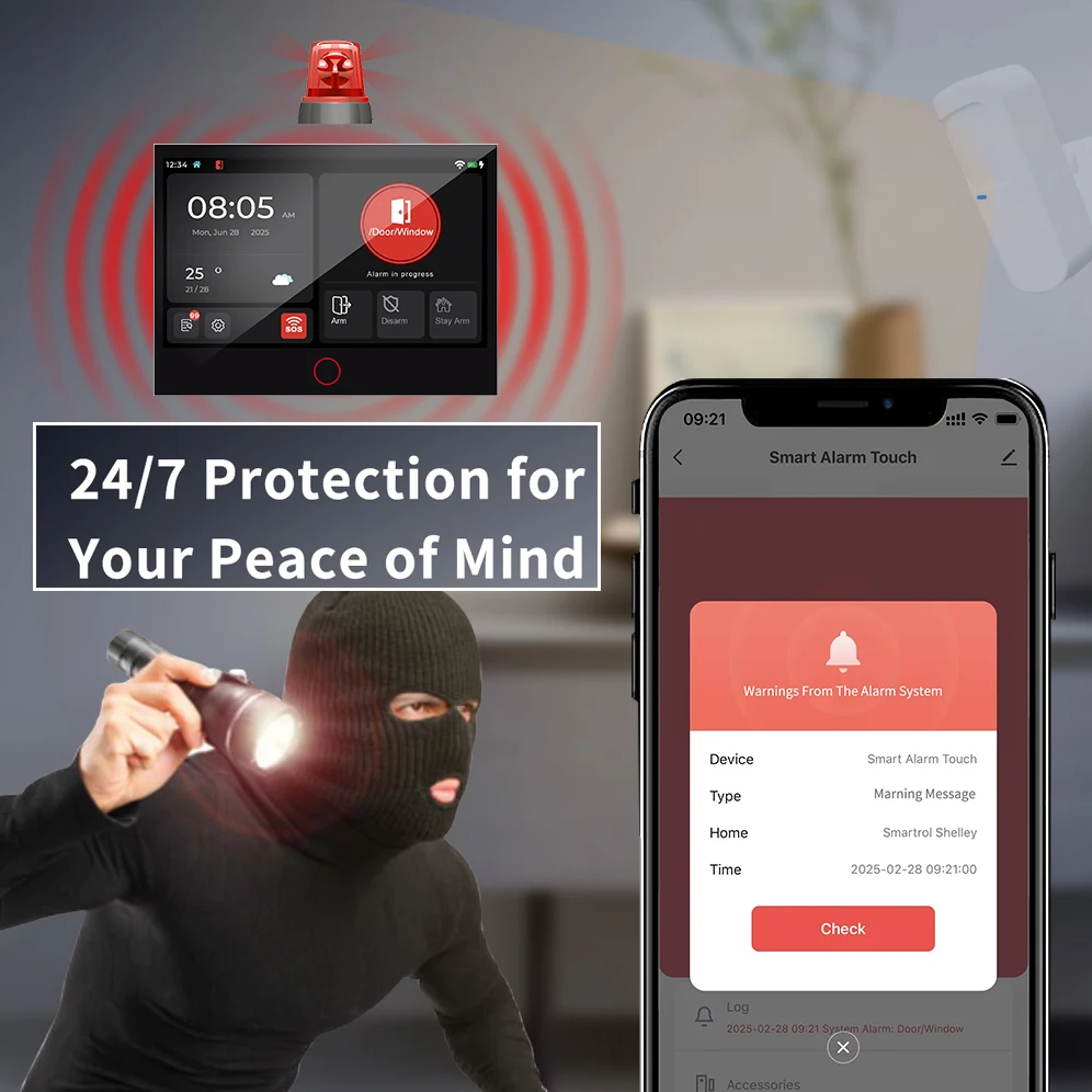 Whole-home Coverage You can install various types of accessories in the corresponding location to form a full alarm system. The alarm system keeps your home safe 24/7.