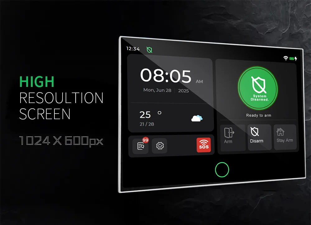 Anti-fingerprint Touch Screen Featuring an anti-fingerprint screen, intuitive touch controls, and one-button protection, you can keep your home safe with ease